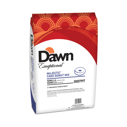 Dawn Majestic Vanilla Cake Donut Mix provides a premium donut mix that produces light, flavorful vanilla donuts.