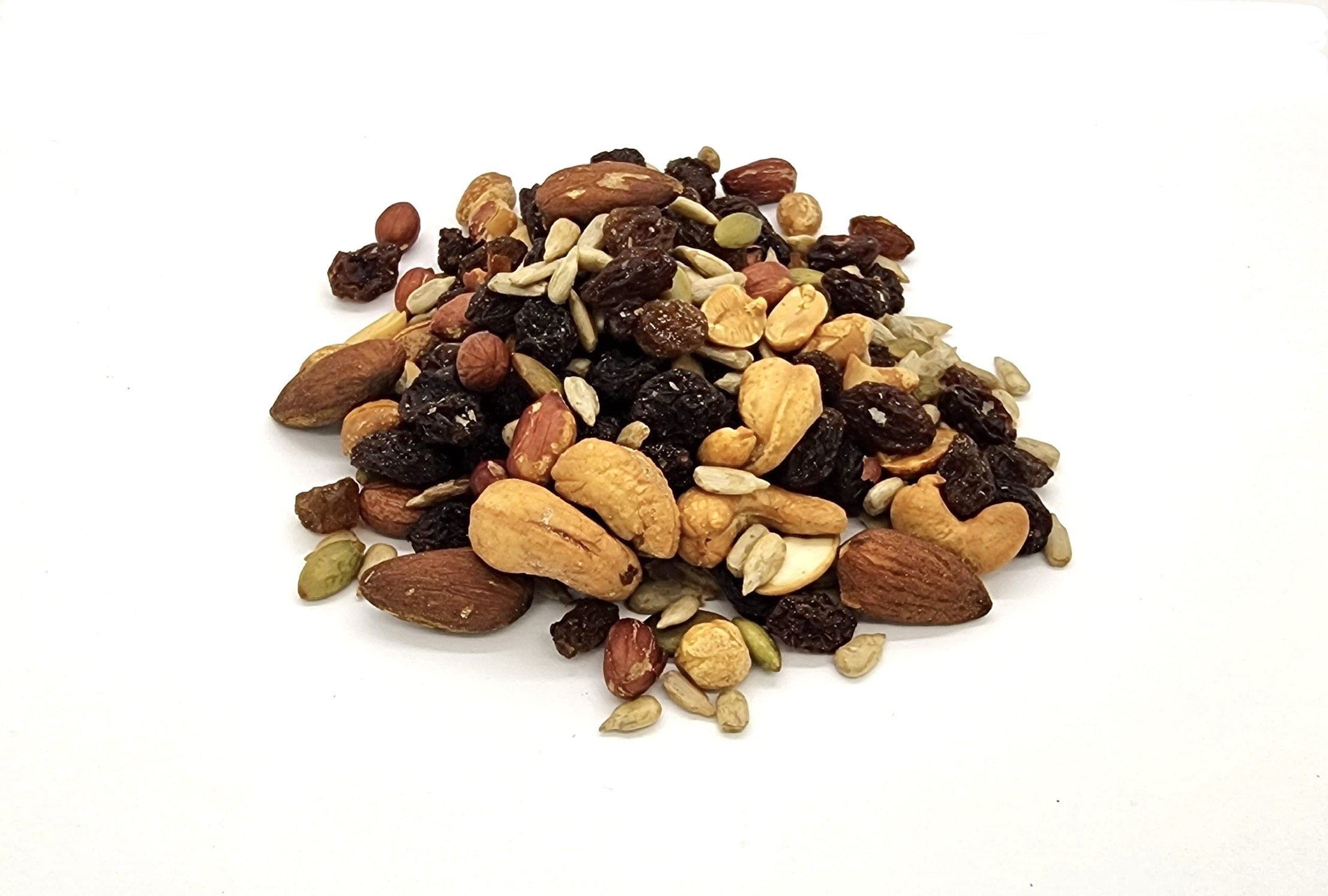 A nutritious blend of roasted sunflower seeds with shells, pepitas, roasted almonds, cashew butts, Spanish peanuts, and raisins. Ideal for students, busy lifestyles, or anyone needing a healthy, energizing snack.